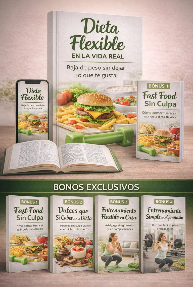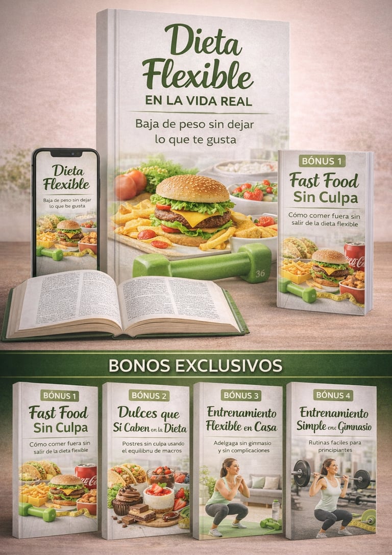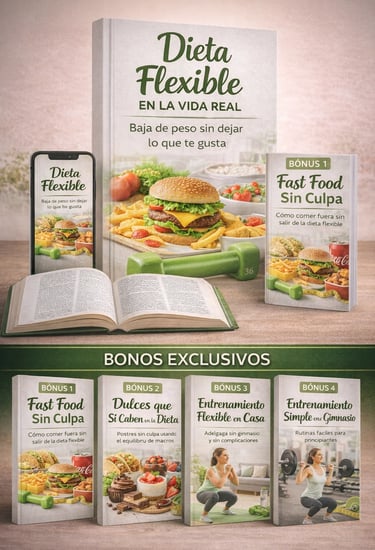 🎁 Al adquirir Dieta Flexible hoy, recibirás TOTALMENTE GRATIS estos 4 regalos exclusivos que complementarán tu alimentación, tu rutina y tus resultados: